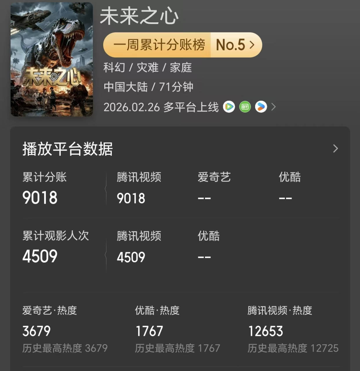 国产科幻片《未来之心》播出,网上全是一星差评,分账票房不到1万人民币。